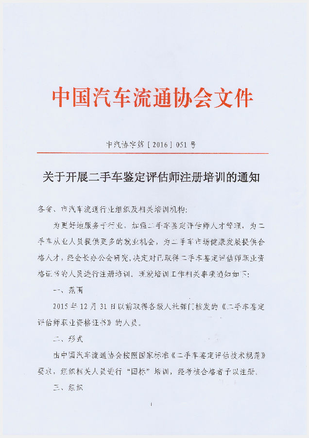 关于开展二手车鉴定评估师注册培训的通知