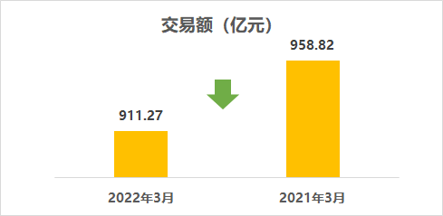 2022年3月,全国二手车市场交易量131.81万辆,交易量环比增长22.41%,月度同比下降15.99%,交易金额为911.27亿元。