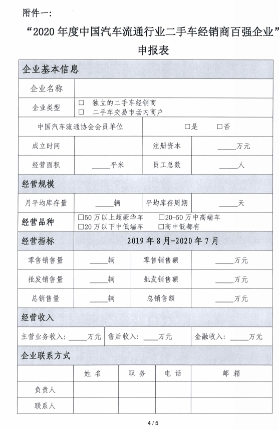 关于开展2020年度中国汽车流通行业 “二手车经销商百强企业排行榜发布”工作的通知