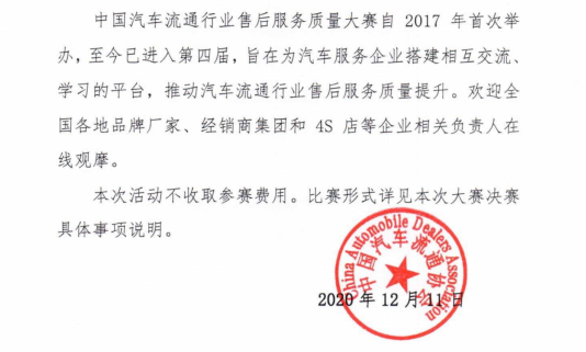 附1:关于举办2020年中国汽车流通行业售后服务质量大赛决赛的通知
