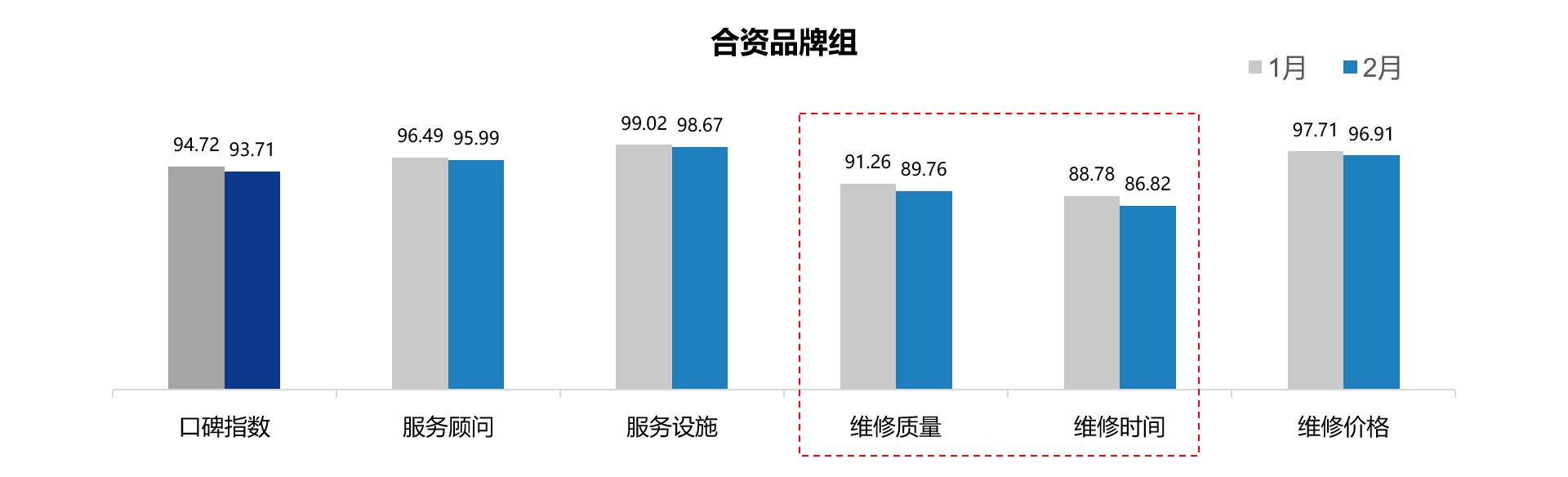 《报告》显示,本月维修时间维度得分为86.17分,环比下降1.31分。受春节影响,各等待环节得分下降幅度均比较大。进入接待区后的等待得分下降2.07分,维修工位等待得分下降3.27分,完工后交车等待得分下降3.05分,付款结算等待得分下降3.21分。《报告》显示,本月维修价格维度得分97.33分,环比下降0.38分;主要受“店内是否提供配件的多种选择?”指标得分下降影响,该指标环比下降2.4分。在消费者对配件认知越来越多及配件价格也越来越公开的环境下,如何满足消费者对性价比的追求,又能保证维修质量,对4S店来说已经是当下必须要重视的课题。《报告》分析显示,本月南北方售后服务口碑指数均环比下降,其中南方口碑指数为93.40分,环比下降0.3分,北方口碑指数为95.15分,环比下降1.16分;从该分值可以判断,本月的口碑指数下降主要受北方的消费者的口碑指数影响所致。各线级城市消费者口碑指数中除三线城市售后服务口碑指数环比提升1.06分,其他线级城市均环比下降。《报告》同时分析了不同性别、各年龄段、各车龄段的不同消费群体的口碑指数,本月不同于女性消费者评价得分高于男性,而是男性消费者评价得分高于女性消费者0.22分;各年龄段的消费者中,20岁以下的消费者评价得分下降最为明显,本月仅为83.56分;各车龄段中,4-5年的消费者评价得分最低,为93.12分。豪华品牌组:本月豪华品牌组售后服务口碑指数为93.28分,环比提升0.33分;在售后服务五维度中,服务顾问、维修时间、维修价格维度均环比提升,其中维修时间维度提升幅度最大,提升1.06分,其次是服务顾问维度,提升0.95分。合资品牌组:本月合资品牌组售后服务口碑指数为93.71分,环比下降1.01分;售后服务五维度均环比下降,其中维修质量维度和维修时间维度下降幅度最大,分别下降1.50分,1.96分。自主品牌组:本月自主品牌组售后服务口碑指数为94.70分,环比下降1.08分;售后服务五维度中,除服务设施维度环比提升0.33分,其他维度均环比下降,其中维修质量维度和维修时间维度下降幅度最大,分别下降2.00分,2.72分。2021年2月“中国汽车售后服务质量消费者口碑优选汽车品牌”名单豪华品牌组:2月覆盖的豪华品牌数量9个,符合筛选“消费者口碑优选品牌”条件的共5个品牌。获得2021年2月中国汽车售后服务质量消费者口碑优选汽车品牌—豪华品牌组的是:捷豹、雷克萨斯、宾利。宝马在本月未能延续“消费者口碑优选品牌”。合资品牌组:2月覆盖的合资品牌数量16个,符合筛选“消费者口碑优选品牌”条件的共6个品牌。获得2021年2月中国汽车售后服务质量消费者口碑优选汽车品牌—合资品牌组的是:北京现代、一汽丰田。东风日产、东风本田在本月未能延续“消费者口碑优选品牌”。自主品牌组:2月覆盖的自主品牌数量8个,符合筛选“消费者口碑优选品牌”条件的仅1个品牌,但未能获得“2021年1月中国汽车售后服务质量消费者口碑优选汽车品牌”。中国汽车售后服务质量监测大数据平台(CADA云数聚)中国汽车售后服务质量监测大数据平台(CADA云数聚),始建于2015年,2017年正式投入使用,2019年升级为汽车消费者360°洞察体系,该体系将深入研究消费者选车、购车、用车、置换等全生命周期的用户体验,为行业和消费者提供实时的消费者体验评价数据。同时,平台还依托于互联网+的模式,从数据采集、运算、到最终分析结果的输出,均由闭环系统自动完成。有效整合了传统调研模式的多种弊端,实现了用户自主参与答题,千万级年度样本量,实时监测,避免人为操作,大幅提高数据的真实性、准确性。中国汽车消费者口碑指数(Auto Customer Mouth Index,简称ACMI)是为全行业提供消费者在选车、购车、用车、置换等全生命周期各环节体验的参考数值。该指数是由中国汽车流通协会指导建设的中国汽车售后服务质量监测大数据平台(CADA云数聚)发布。平台通过汽车消费者360°洞察体系,采集海量消费者体验数据,运用科学的计算模型,真实反映消费者体验结果,实时监测行业服务质量。中国汽车消费者口碑指数(ACMI)由“汽车销售服务口碑指数”“汽车售后服务口碑指数”“汽车金融消费口碑指数”等多个指数组成。中国汽车消费者口碑指数(ACMI)依托于中国汽车售后服务质量监测大数据平台(CADA云数聚),该平台拥有5大特色:国家级汽车行业数据服务平台、行业主管部门备书、国内最大的消费者体验数据源、互联网+模式、国家标准为依据。中国汽车售后服务质量消费者口碑月度优选汽车品牌是基于当月到店接受服务的消费者通过“中国汽车售后服务质量监测大数据平台(CADA云数聚)”对店内的服务进行评价,以系统自动分析生成的各品牌组的“月度汽车售后服务消费者口碑指数”为依据,高于此指数的汽车品牌,定义为“中国汽车售后服务质量消费者口碑月度优选汽车品牌”。参与“中国汽车售后服务质量消费者口碑月度优选汽车品牌”评选的汽车品牌需达到以下条件: