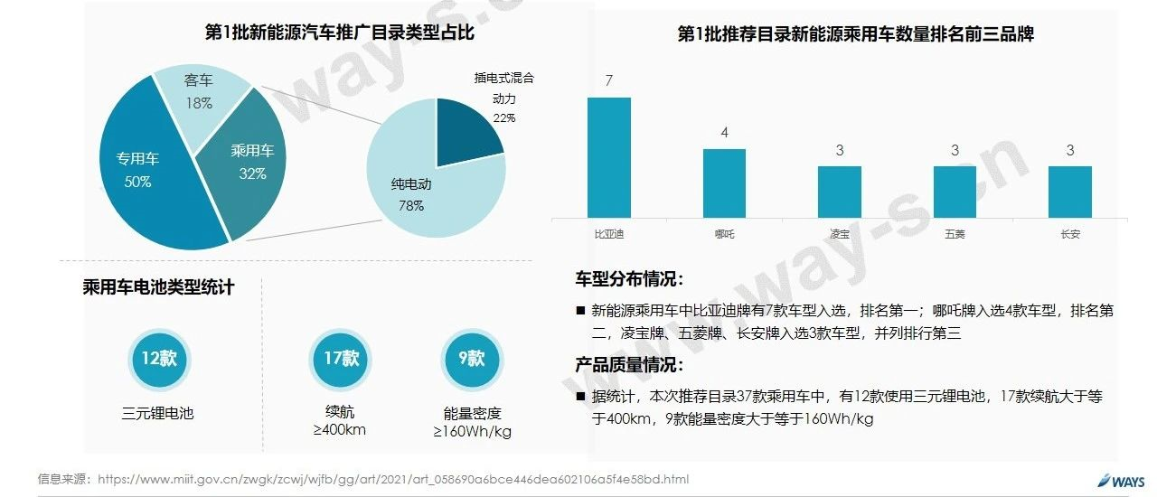 1月29日,工信部发布2021年第1批新能源汽车推荐目录,共有115款新能源车型入选,其中符合2021产品技术要求的新能源车型有94款、其他新能源车型有21款,新能源乘用车入选37个车型。