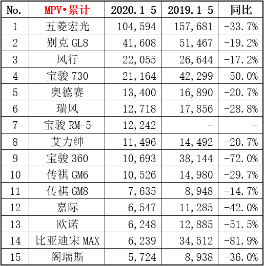 5月份MPV销量8.4万辆,同比下降21.8%,环比增长12.3%;累计销量34.4万辆,同比下降41.0%。