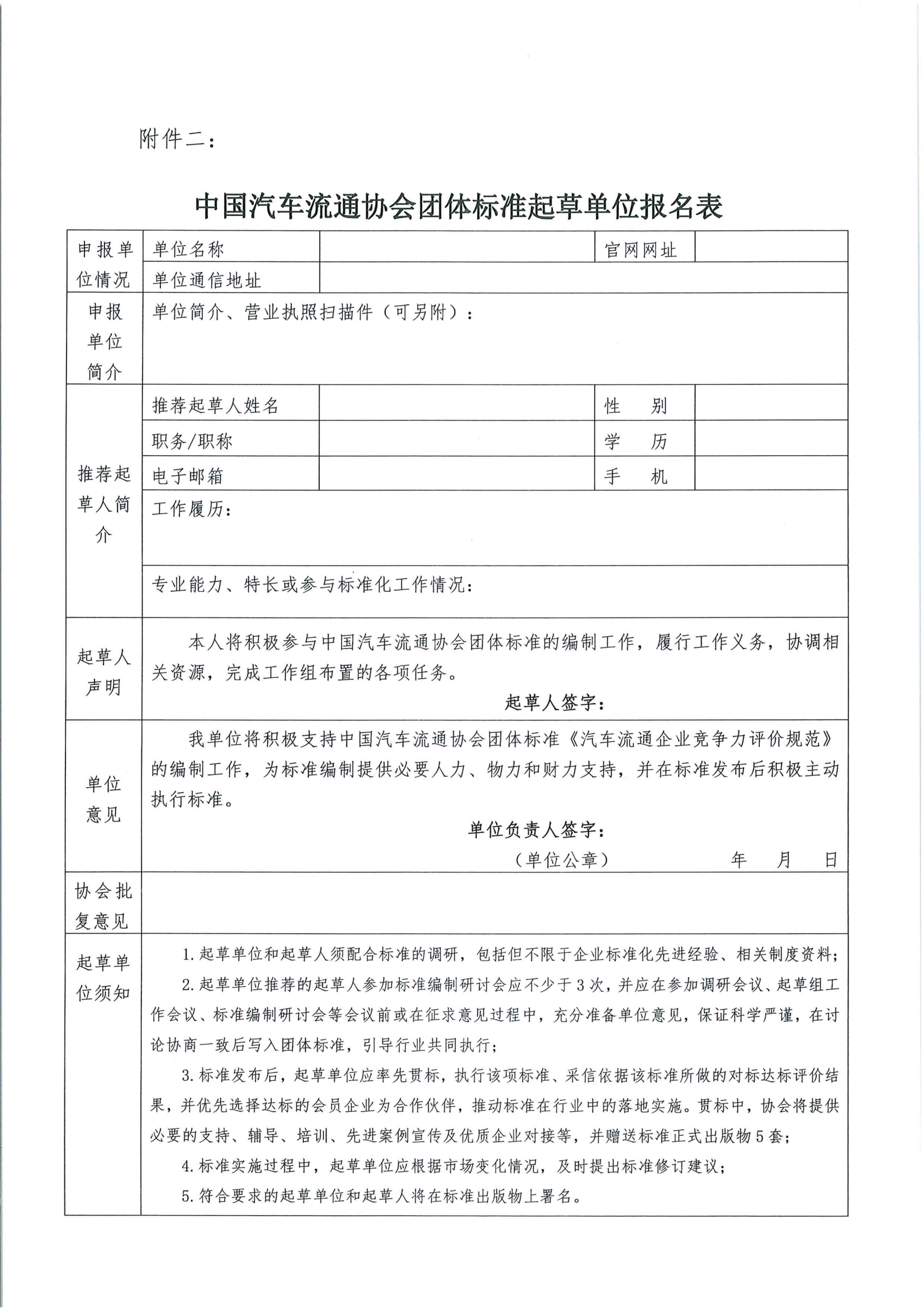 关于公开征集商务领域汽车流通行业标准化技术委员会委员的通知